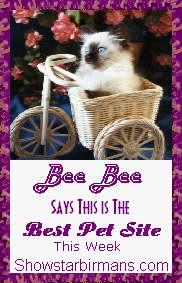 Odie and the gang at Showstar Birmans bestowed the following award on us for "Best Pet