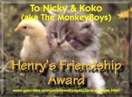 Marianne and the Dutchcats awarded us the "Ying Yang Award" for March 2001! Thanks to them and to all the people who voted for us!